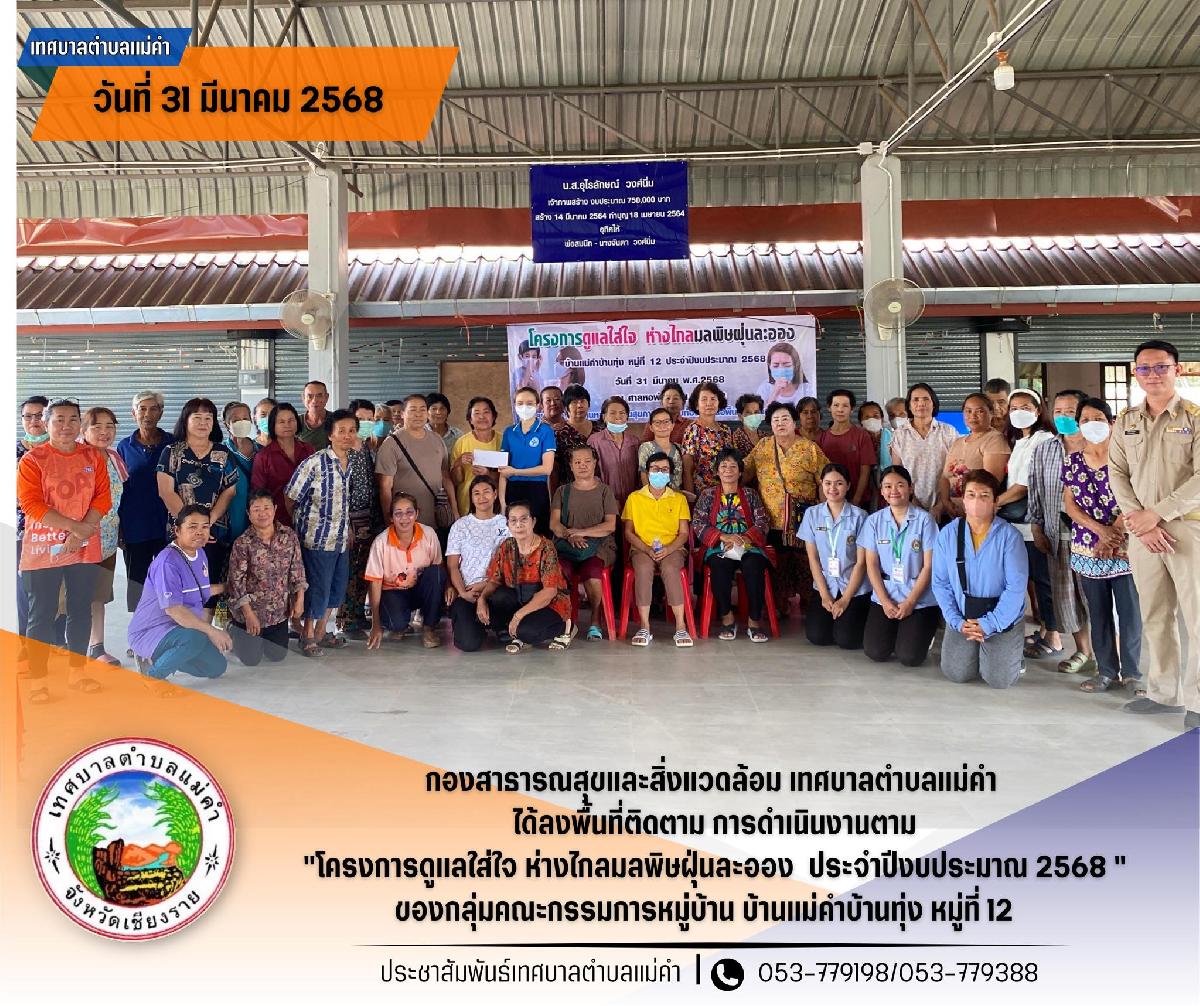 นายชัยวัน คำเงิน นายกเทศมนตรีตำบลแม่คำ และกองสาธารณสุขและสิ่งแวดล้อม ได้ร่วมเปิดโครงการป้องกันควบคุมโรคติดต่อและภัยสุขภาพในชุมชน หมู่ที่ 12 ประจำปีงบประมาณ 2569