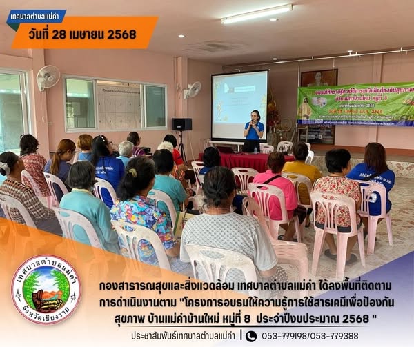 นายชัยวัน คำเงิน นายกเทศมนตรีตำบลแม่คำ และกองสาธารณสุขและสิ่งแวดล้อม ได้ร่วมเปิดโครงการป้องกันควบคุมโรคติดต่อและภัยสุขภาพในชุมชน หมู่ที่ 12 ประจำปีงบประมาณ 2569