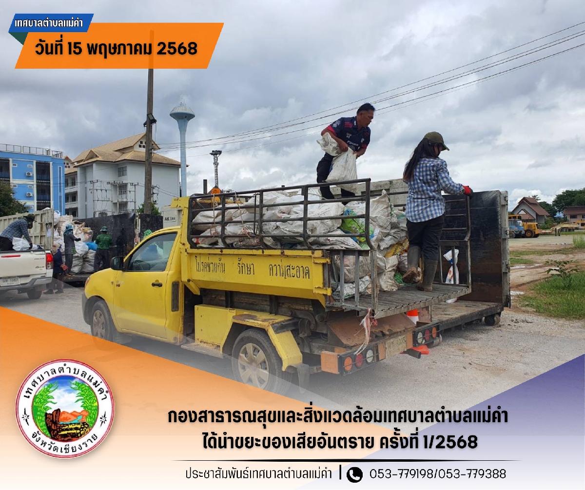 กองสาธารณสุขและสิ่งแวดล้อมเทศบาลตำบลแม่คำได้นำขยะของเสียอันตราย ครั้งที่ 1/2568 ไปส่งให้ อบจ.ชร. เพื่อนำไปจัดการตามหลักสุขาภิบาล