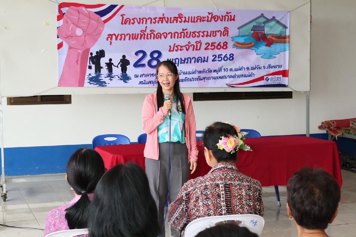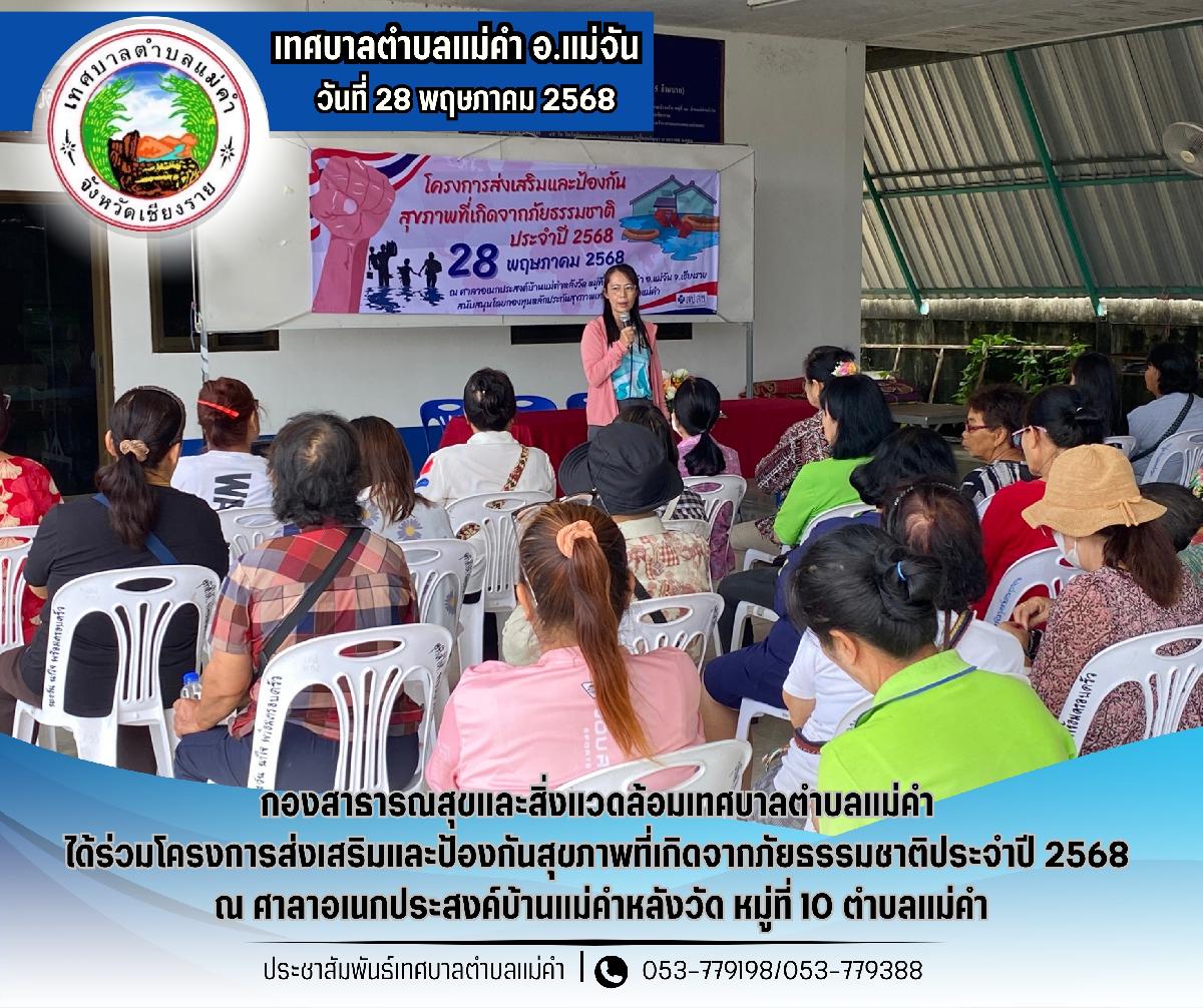 นายชัยวัน คำเงิน นายกเทศมนตรีตำบลแม่คำ และกองสาธารณสุขและสิ่งแวดล้อม ได้ร่วมเปิดโครงการป้องกันควบคุมโรคติดต่อและภัยสุขภาพในชุมชน หมู่ที่ 12 ประจำปีงบประมาณ 2569