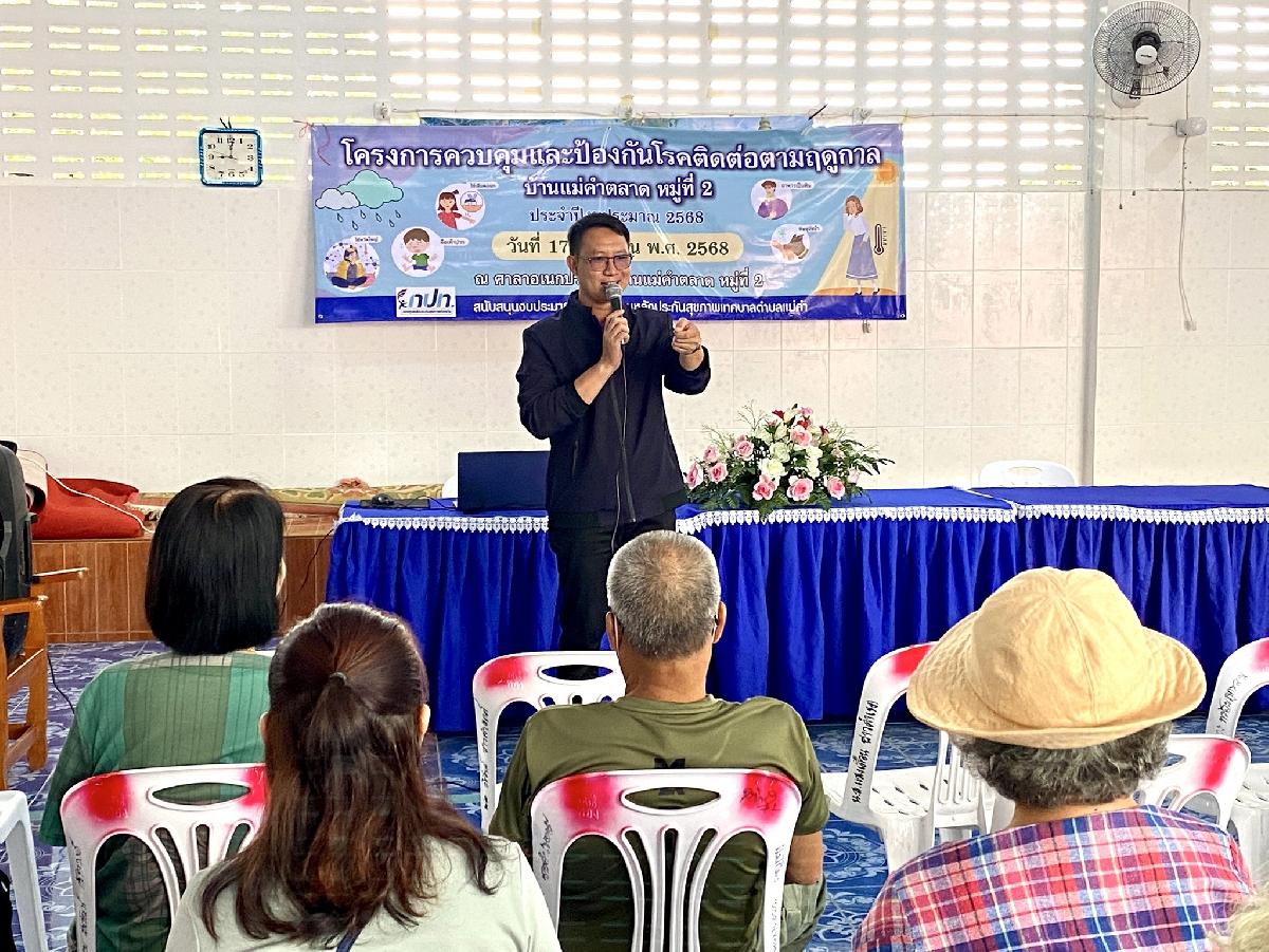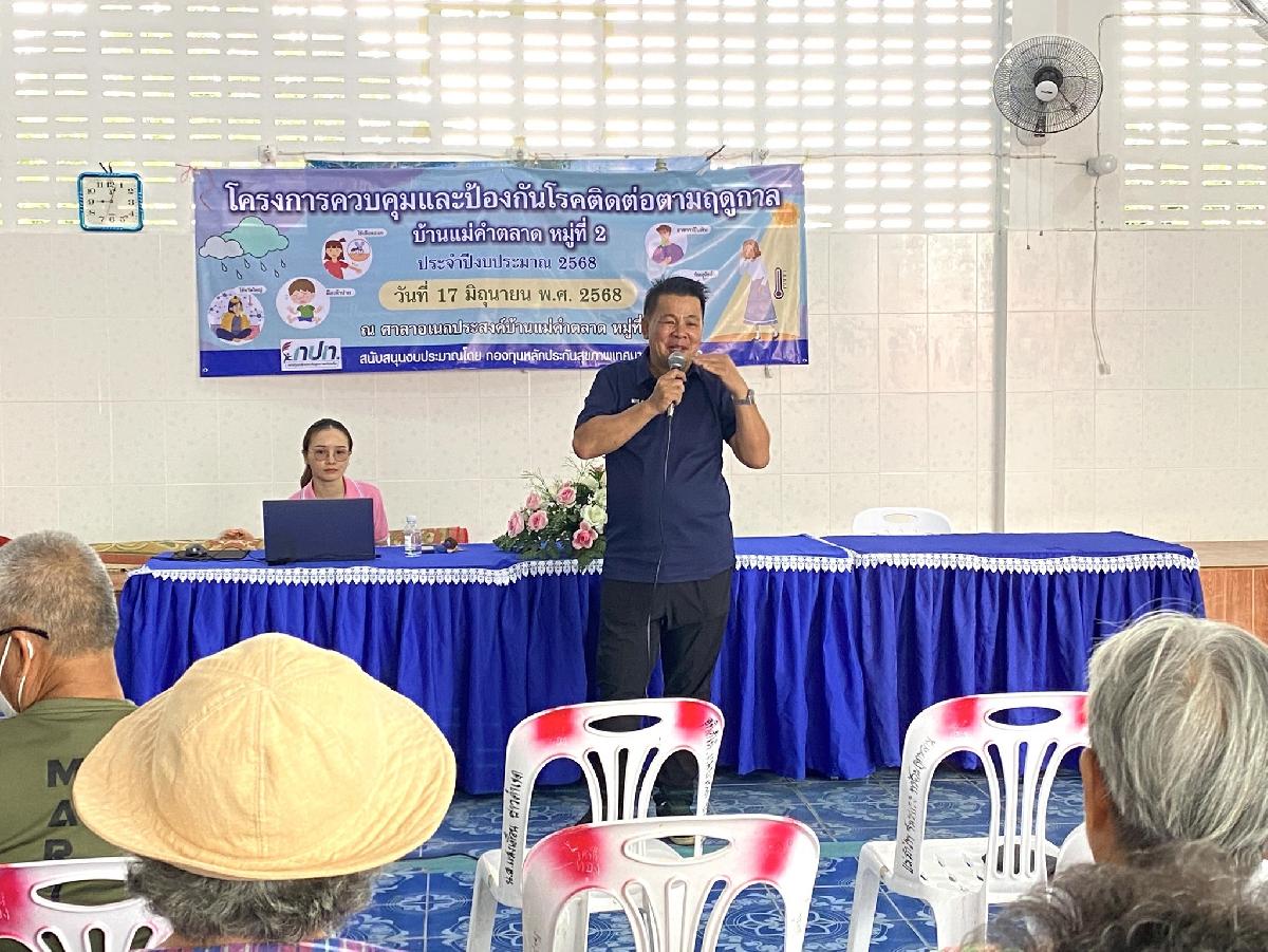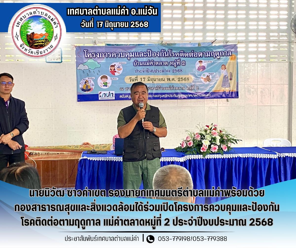 นายชัยวัน คำเงิน นายกเทศมนตรีตำบลแม่คำ และกองสาธารณสุขและสิ่งแวดล้อม ได้ร่วมเปิดโครงการป้องกันควบคุมโรคติดต่อและภัยสุขภาพในชุมชน หมู่ที่ 12 ประจำปีงบประมาณ 2569