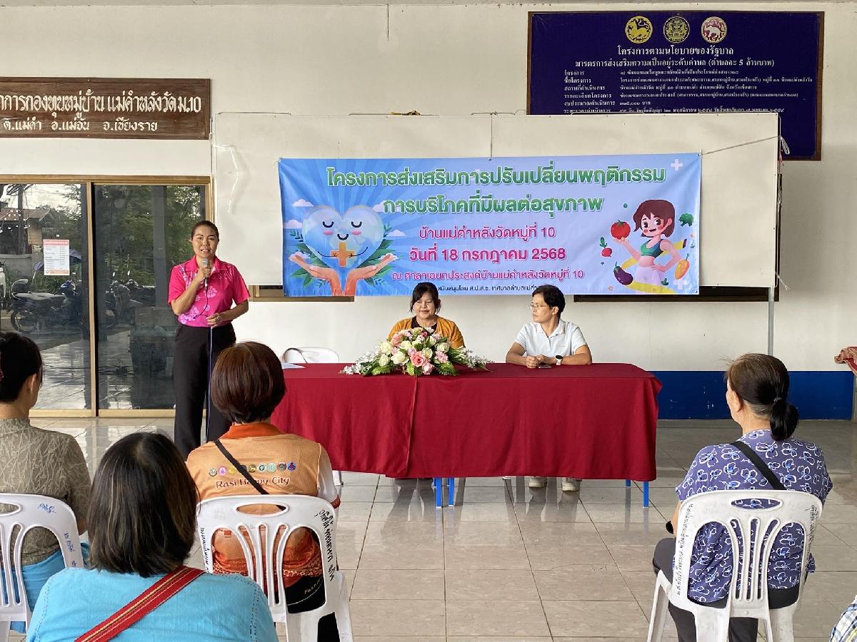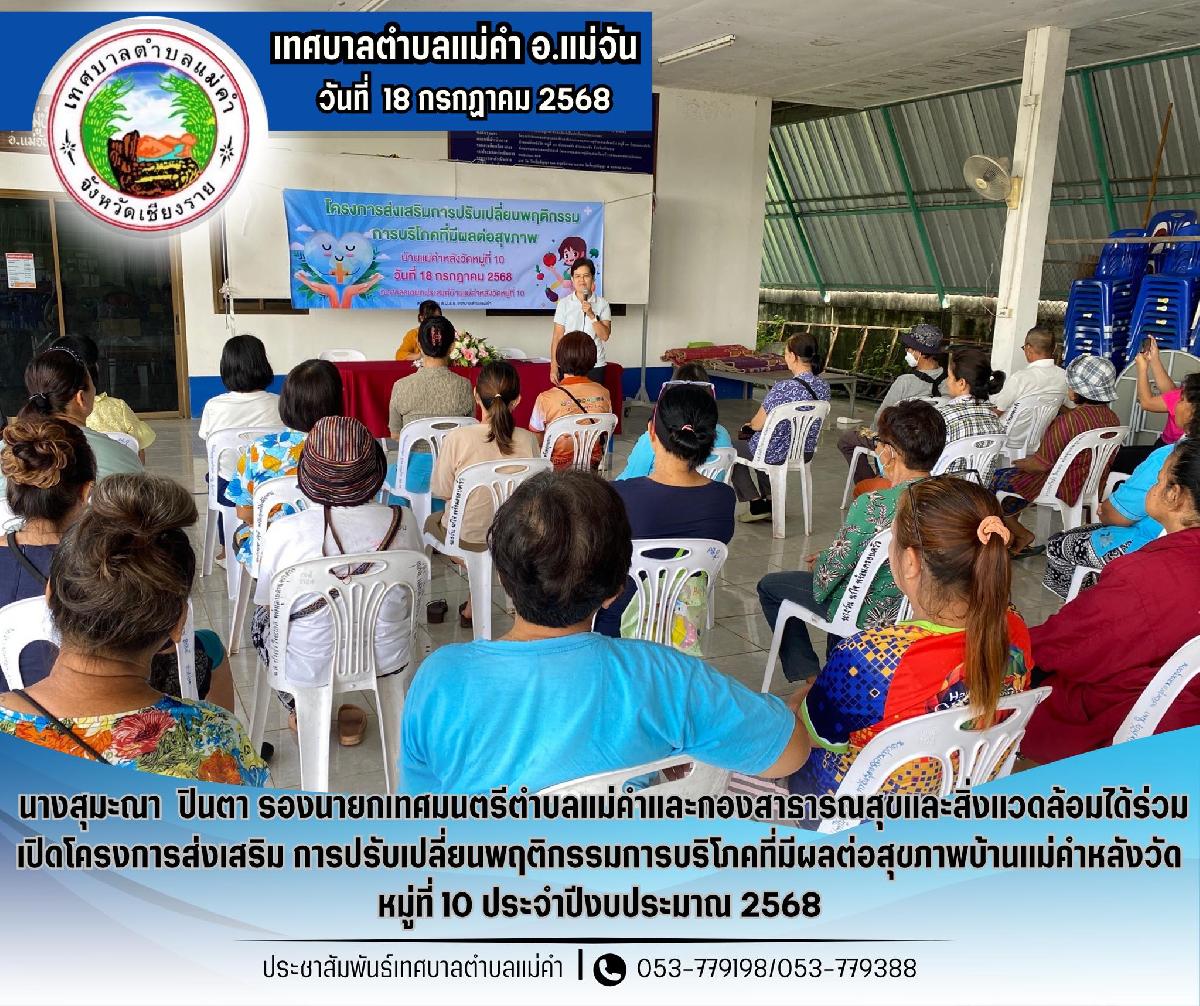 นายชัยวัน คำเงิน นายกเทศมนตรีตำบลแม่คำ และกองสาธารณสุขและสิ่งแวดล้อม ได้ร่วมเปิดโครงการป้องกันควบคุมโรคติดต่อและภัยสุขภาพในชุมชน หมู่ที่ 12 ประจำปีงบประมาณ 2569