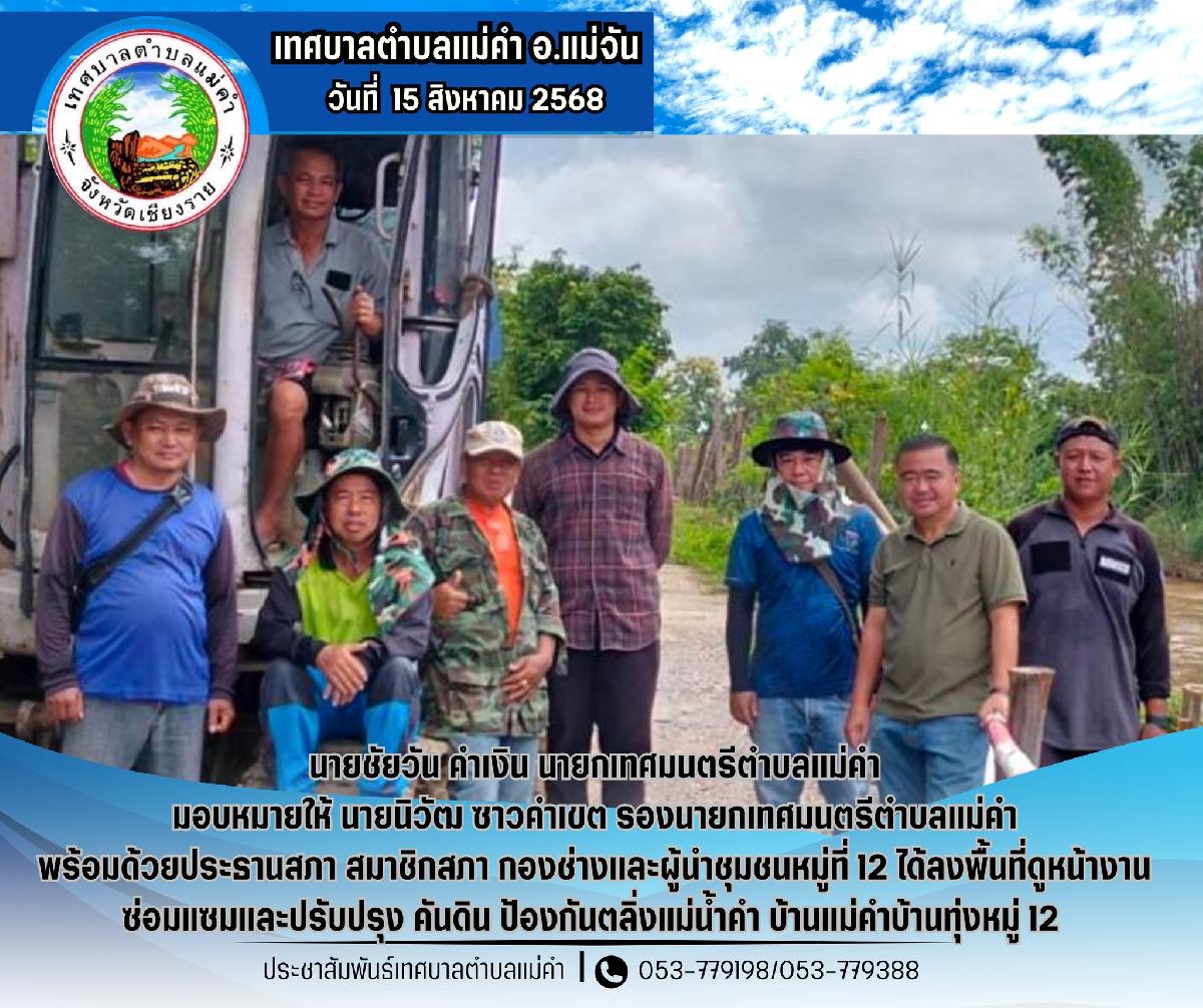 นายชัยวัน คำเงิน นายกเทศมนตรีตำบลแม่คำพร้อมด้วย นายนายประเสริฐ รีอินทร์ ประธานสภาเทศบาลตำบลแม่คำ สมาชิกสภาและผู้นำชุมชน ลงพื้นที่ติดตามหน้างานเทหินคลุก บ้านแม่คำบ้านทุ่ง หมู่ที่ 12