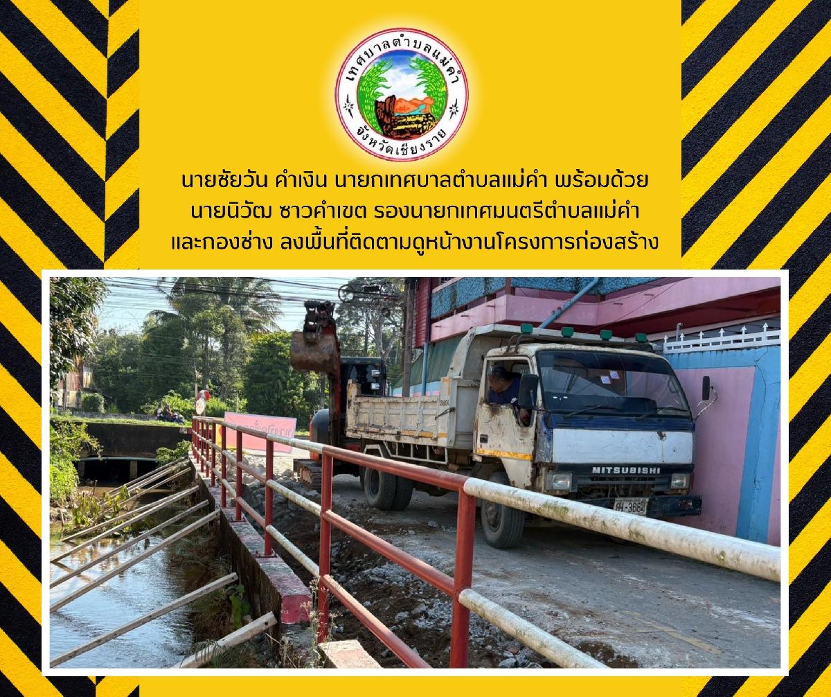 นายชัยวัน คำเงิน นายกเทศมนตรีตำบลแม่คำพร้อมด้วย นายนายประเสริฐ รีอินทร์ ประธานสภาเทศบาลตำบลแม่คำ สมาชิกสภาและผู้นำชุมชน ลงพื้นที่ติดตามหน้างานเทหินคลุก บ้านแม่คำบ้านทุ่ง หมู่ที่ 12
