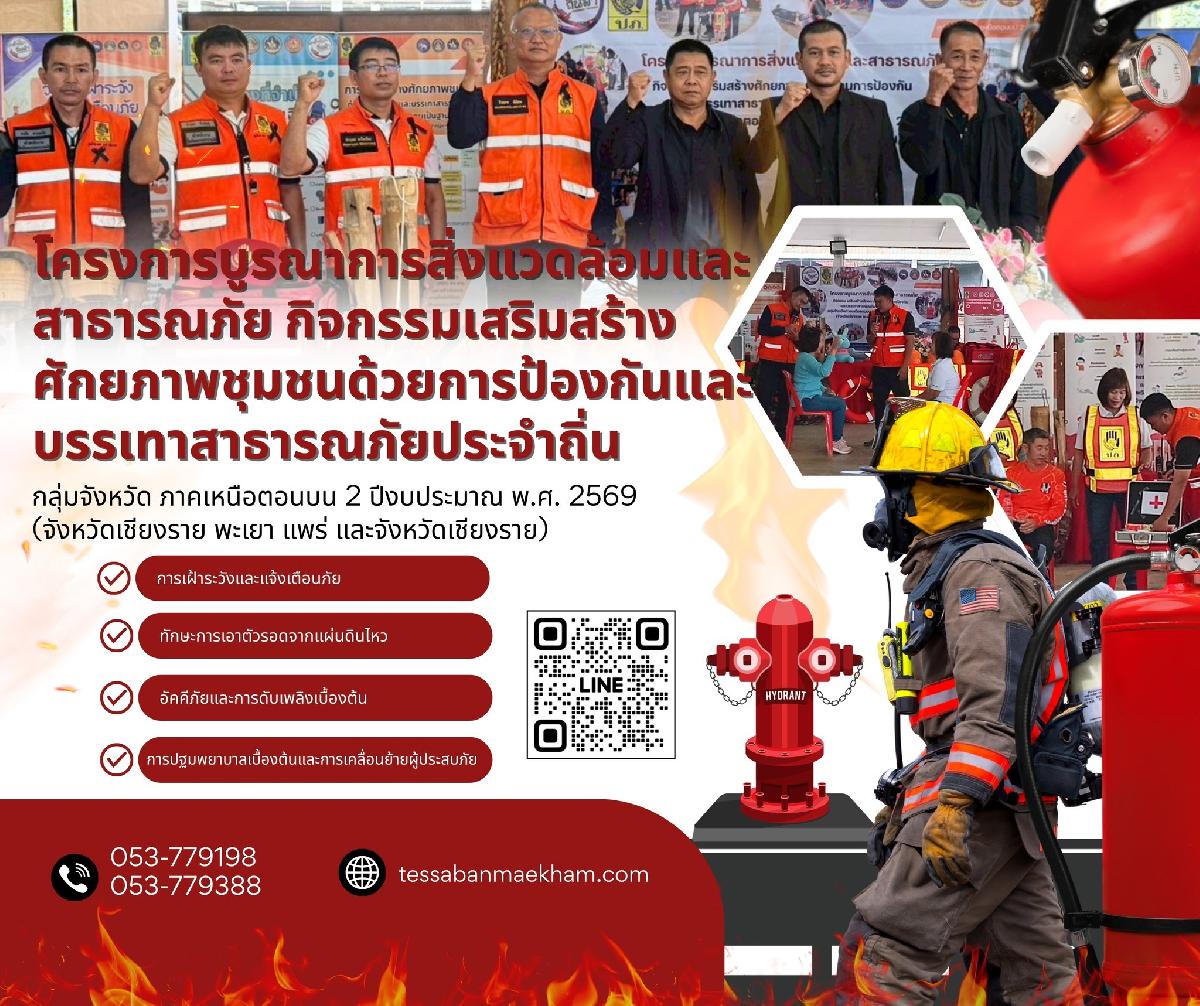 นายชัยวัน คำเงิน นายกเทศมนตรีตำบลแม่คำ และกองสาธารณสุขและสิ่งแวดล้อม ได้ร่วมเปิดโครงการป้องกันควบคุมโรคติดต่อและภัยสุขภาพในชุมชน หมู่ที่ 12 ประจำปีงบประมาณ 2569