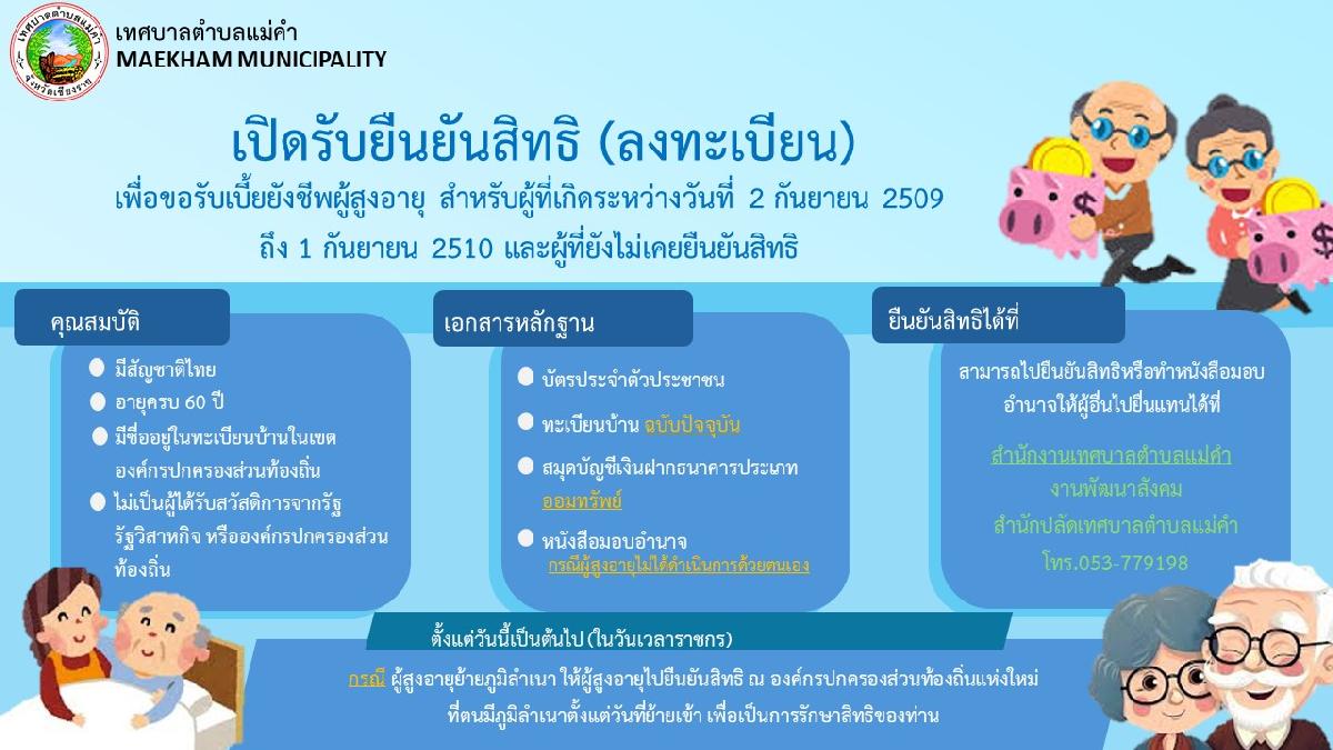 ประชาสัมพันธ์ การรับยืนยันสิทธิรับเงินเบี้ยยังชีพผู้สูงอายุ ประจำปีงบประมาณ 2570