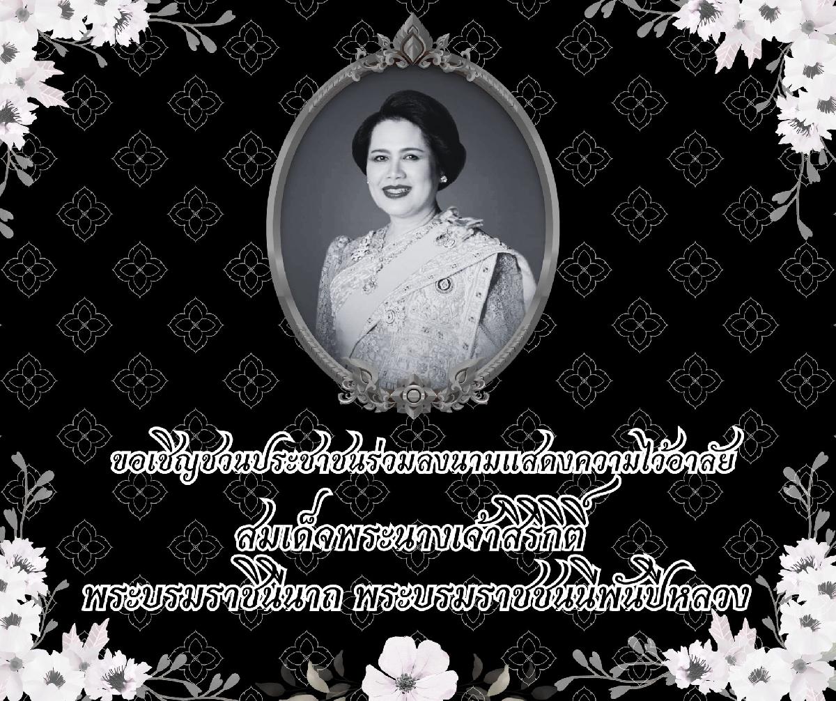 ขอเชิญชวนประชาชนร่วมลงนามถวายอาลัย สมเด็จพระนางเจ้าสิริกิติ์ พระบรมราชินีนาถ พระบรมราชชนนีพันปีหลวง ผ่านช่องทางออนไลน์